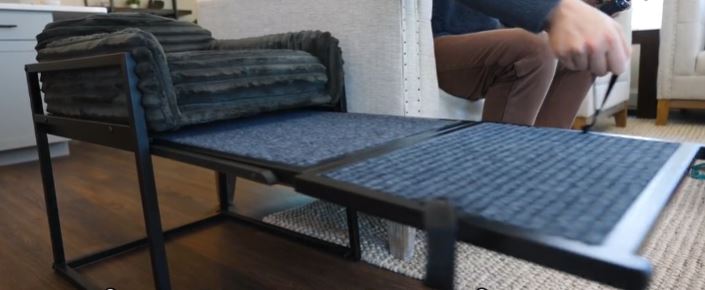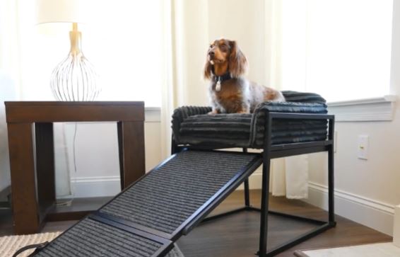 Many of our pets love to spend some time with us in our office or room as we work. The SeatMate is an office chair that lets your pet relax by your side as you work. It has a slide-out ramp to make it easier for your pet to reach the top. It has a steel frame with a comfortable seat on top. It also has anti-slip rubber feet.